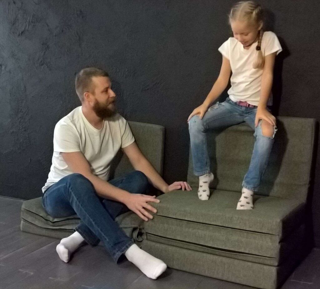 Перша модель конструктора м’яких модульних меблів виконана з чотирьох елементів – тетраміно і саме тому містить в собі найбільшу кількість форм в ході трансформації. Найбільшого поширення цей ефект здобув завдяки популяризаціі всесвітньовідомої гри “тетріс”.